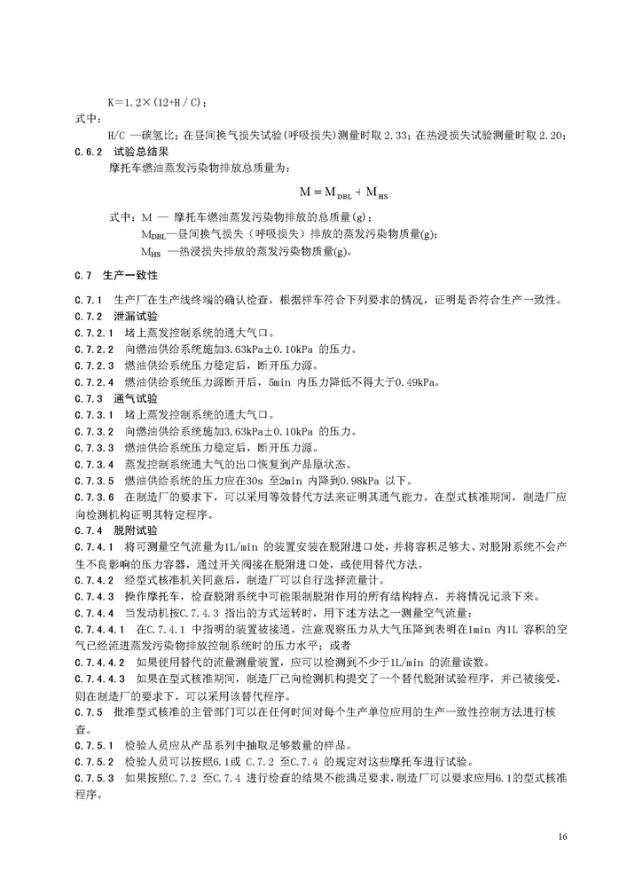 《摩托車和輕便摩托車燃油蒸發污染物排放限值及測量方法》GB20998-2007