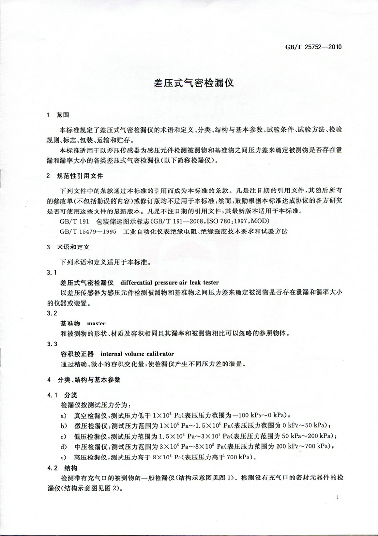 《差壓式氣密檢漏儀》GB/T 25752—2010